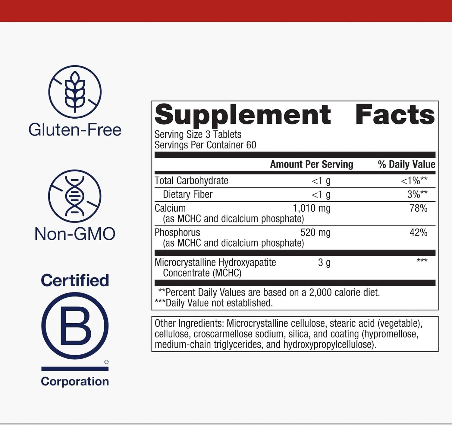 天然に存在するカルシウム、リン、そして骨タンパク質を含む微結晶性ハイドロキシアパタイト濃縮物を提供し、骨密度と骨の強さをサポートします