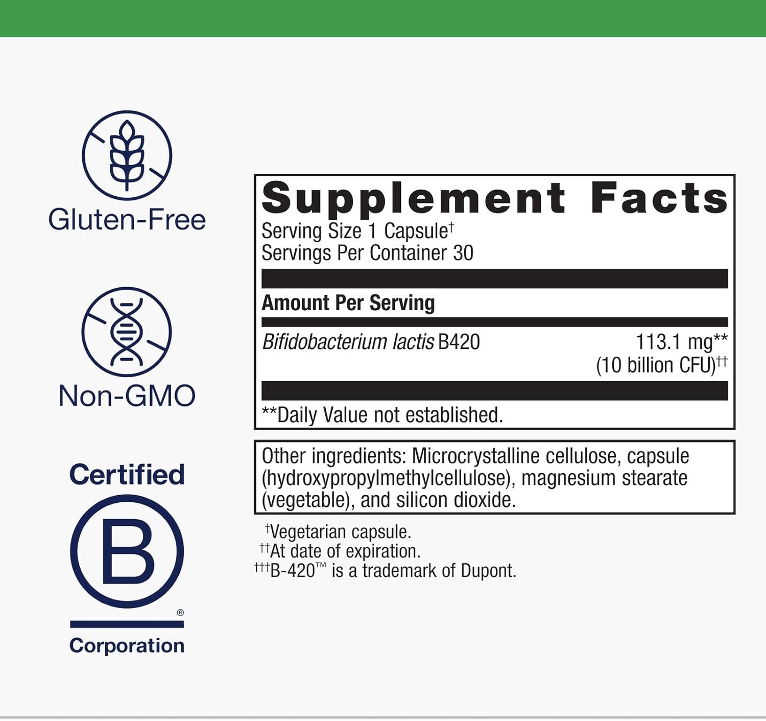1カプセルあたり 113.1mg Bifidobacterium lactis B420